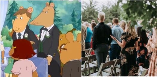 La elección del atuendo de un invitado a la boda se debate en línea después de que revelaron que planeaban crear un vestido basado en el meme ‘Gay Rat Wedding’ del programa infantil de PBS. Arturo.