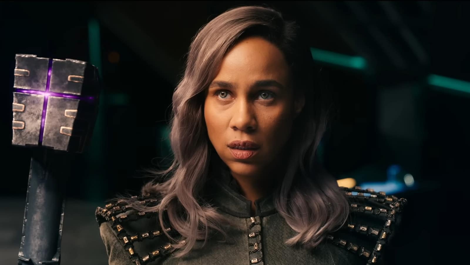 It now emits a purple energy, which can be dispelled upon making contact with the ground, similar to, but on a much smaller scale than, the planet-destroying effects of Ronan’s weapon when it was combined with the Power Stone. It’s possible that either the Universal Weapon always has some portion of this power that the Power Stone augmented or that Dar-Benn had the new Universal Weapon designed with inspiration from its fusion with the Power Stone. It’s even possible that this redesign was meant to honor Ronan, her predecessor, and continue the mythmaking of their shared position and empire.